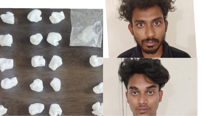 సైబరాబాద్ SOT పోలీసులు రాజమండ్రి కి చెందిన యువకులైన ఇద్దరు ఇంజనీరింగ్ విద్యార్థులను పట్టుకుని 4.2 లక్షల విలువ చేసే MDM మత్తు పదార్థం స్వాధీనం