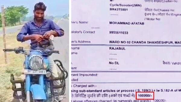 హేల్మెట్ పెట్టుకోవడం తప్పనిసరి. ఇది లేకుంటే మీ ప్రాణాలకే ప్రమాదం. పోలీసులు ఎన్నిసార్లు హెచ్చరించినా చాలా మంది ఈ విషయాన్ని లైట్ తీసుకుంటారు. కానీ మీకోసం మీ కుటుంబ ఎదురుచూస్తోందని కచ్చితంగా గుర్తుంచుకోవాలి.అయితే హెల్మెట్ పెట్టుకోకుంటే ట్రాఫిక్ పోలీసులు చలాన్ విధిస్తారని అందరికీ తెలిసిందే. కానీ ఓ వ్యక్తి మాత్రం ఏకంగా లక్ష రూపాయల ఫైన్ వేశారు. దీంతో అతడు లబోదిబోమంటున్నాడు.కొన్నిసార్లు కొంతమంది ట్రాఫిక్ పోలీసులకు సంబంధించిన కేసులు వింతగా ఉంటాయి. బీహార్కు సంబంధించి ఇలాంటి కేసు ఒకటి వెలుగులోకి వచ్చింది. వాస్తవానికి బీహార్లోని సుపౌల్లో ట్రాఫిక్ పోలీసుల ఈ-చలాన్ విధానం సామాన్యులకు సమస్యగా మారింది. మహ్మద్ అఫ్రోజ్ ఆలం అనే ఓ గుమస్తా తన బైక్కు రూ.1,00,000 ఫైన్ చూసి షాక్ అయ్యాడు. పొల్యూషన్ సర్టిఫికేట్ పొందడంలో ఇబ్బందులు ఎదుర్కొన్నాడు. అసలు ఏంటి సమస్య అని చూస్తే.. భారీ చలాన్ కనిపించింది. హెల్మెట్ లేకుండా బైక్ నడుపుతున్న సమయంలో డిగ్రీ కాలేజ్ చౌరస్తా వద్ద ట్రాఫిక్ పోలీసులు తన ఫొటో తీసి జరిమానా విధించారు.